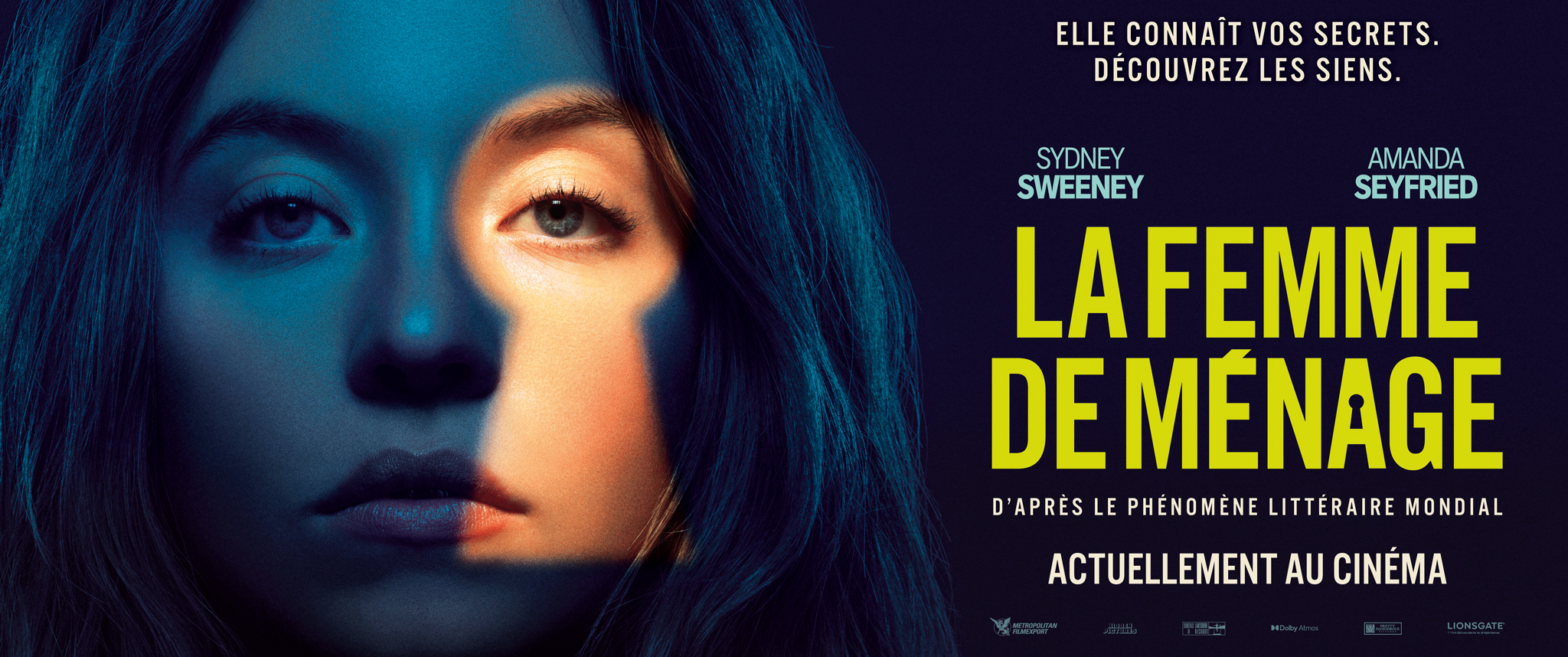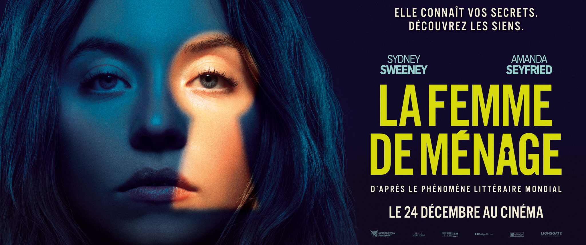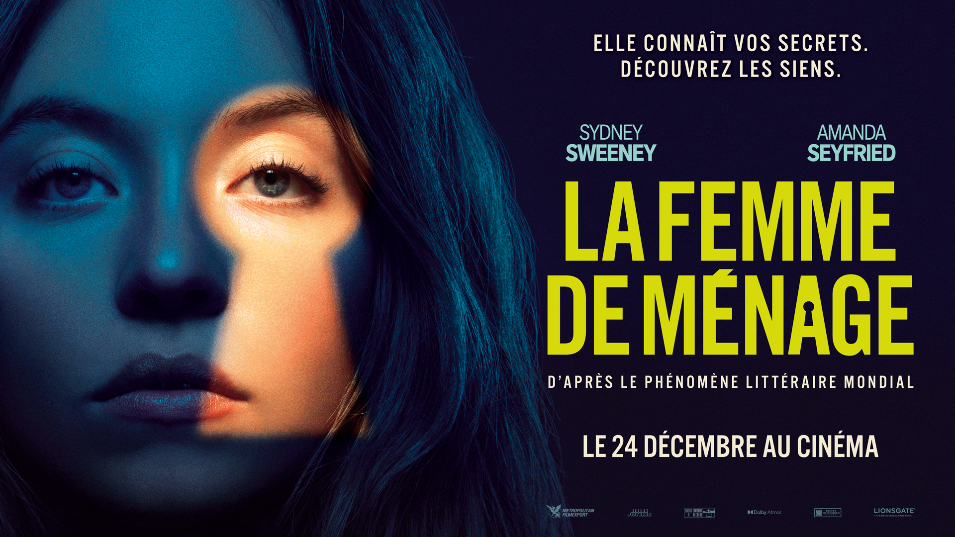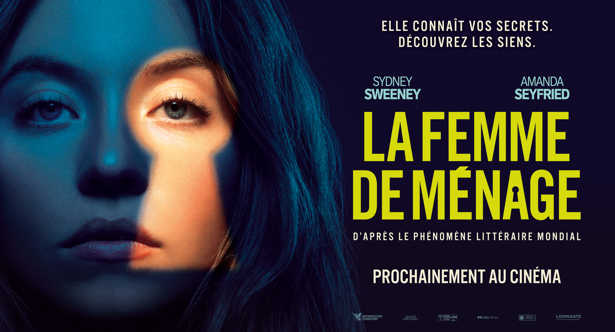 LA FEMME DE MÉNAGE est un thriller haletant porté par Sydney Sweeney et Amanda Seyfried, adapté du best-seller à succès de Freida McFadden. Réalisé par Paul Feig, le film entraîne les spectateurs dans un univers aussi élégant que dérangeant, où derrière les sourires parfaits et les apparences soignées, rien n’est ce qu’il semble être.En quête d’un nouveau départ, Millie (Sydney Sweeney) accepte un poste de femme de ménage à demeure chez Nina (Amand Seyfried) et Andrew Winchester (Brandon Sklenar), un couple aussi riche qu’énigmatique. Ce qui s’annonce comme l’emploi idéal se transforme rapidement en un jeu dangereux, mêlant séduction, secrets et manipulations.Derrière les portes closes du manoir Winchester se cache un monde de faux-semblants et de révélations inattendues… Un tourbillon de suspense et de scandales qui vous tiendra en haleine jusqu’à la dernière seconde.